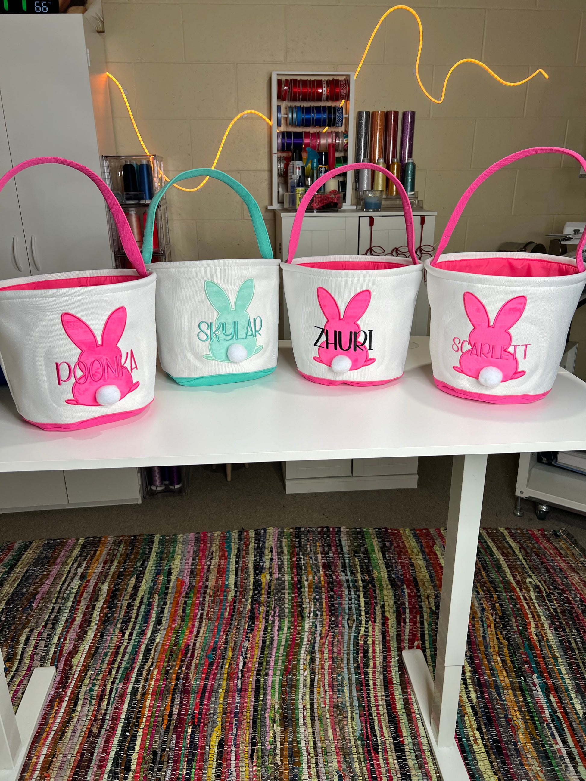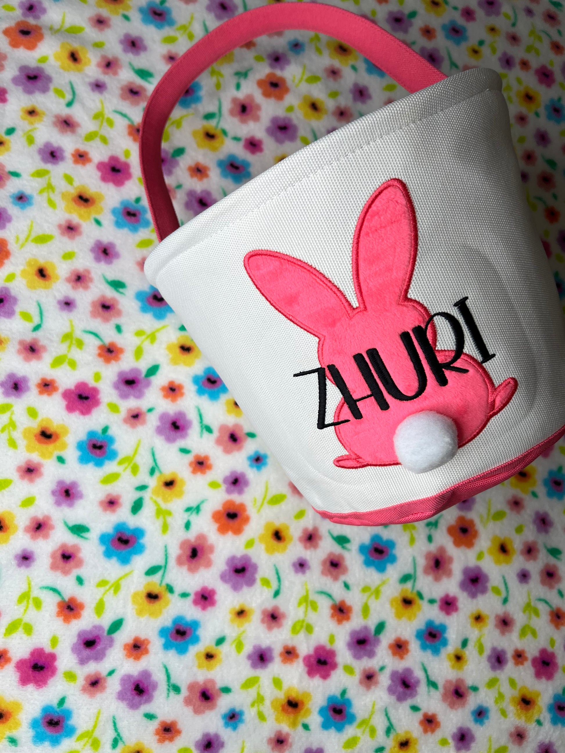 Personalized kids Easter bunny basket monogrammed just the way you like it. Personalized Easter baskets are perfect for Easter egg hunts, not only will they stand out, but it ensures that your kiddos basket will never be mistaken for anyone else basket. This basket can last your child a lifetime, and it keeps you from ever having to purchase a new one.